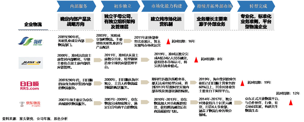 2)企业物流转型:京东、日日顺、领鲜、准时达等;