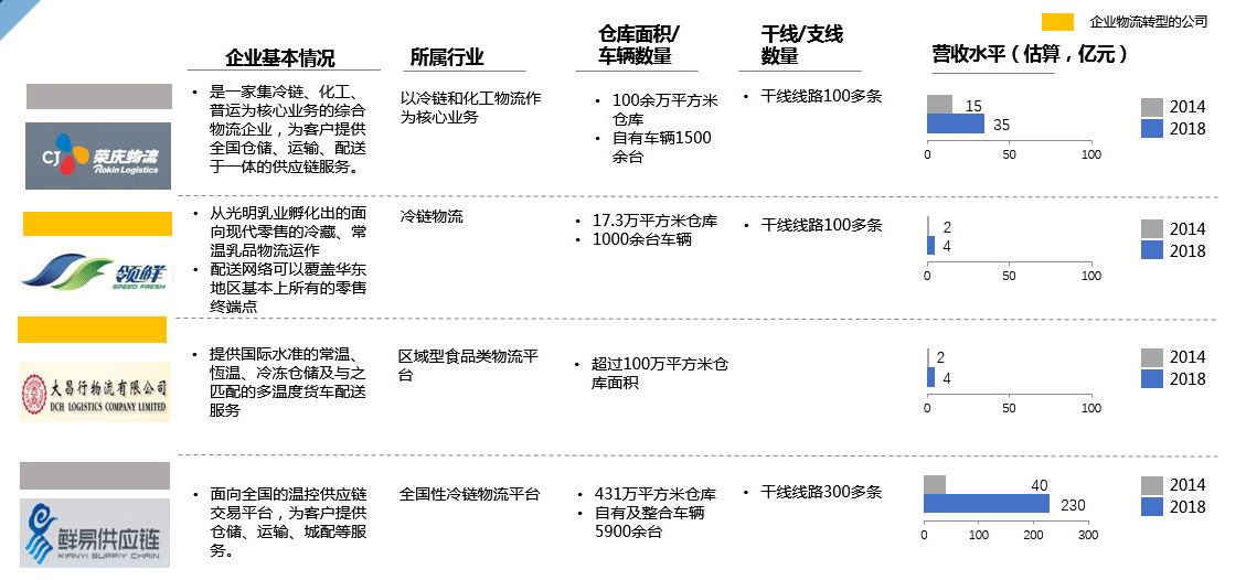 随着商流的不断升级迭代,物流在商流中的地位不断提升已成为共识。如果我们拿目前几家企业物流转型后的公司与同行进行比较,可以看出,他们与竞争对手之间还有差距。不论是从运营资产还是从营收规模等方面来看,体量上的差距还是比较明显的。