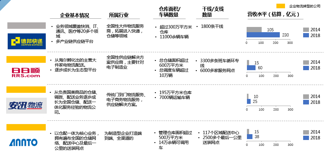 1)标准服务型物流企业:顺丰、德邦、三通一达等;