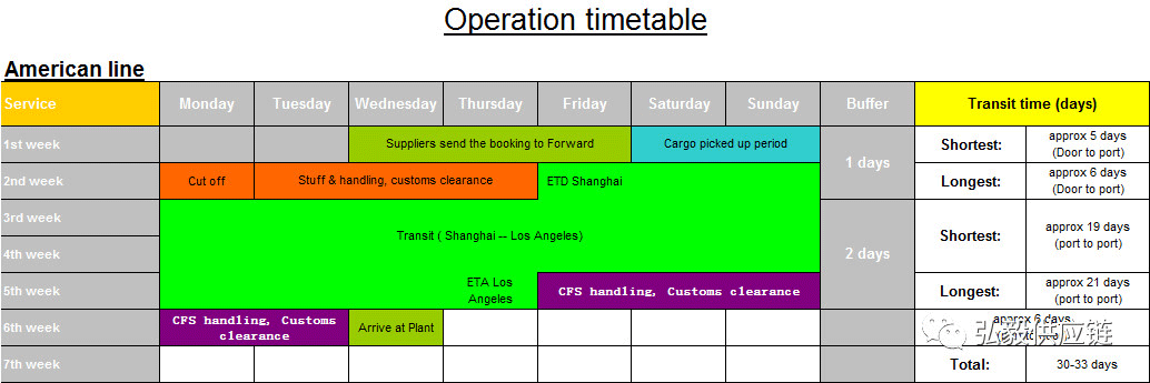 在SOP中明确了海运操作的过程和每个步骤需要的时间,汇总在一起就是门到门的全部在途天数。