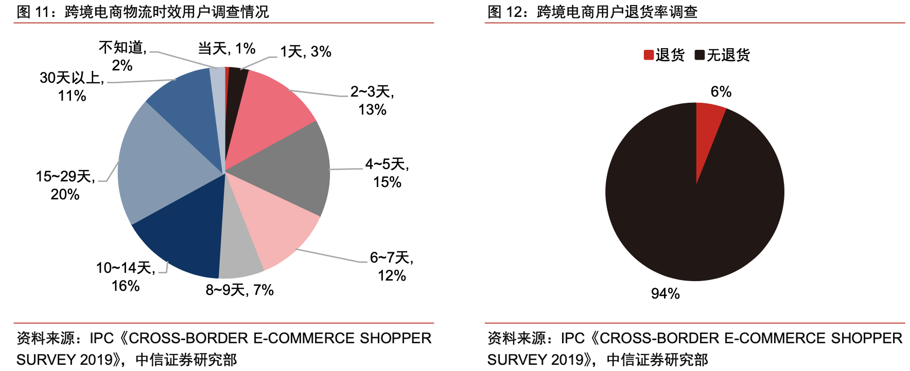 ■ 跨境电商正向物流复杂度高,逆向物流难度更高,跨境电商退货处理繁琐、困难,较差的退货体验导致目前跨境电商退货率较低。