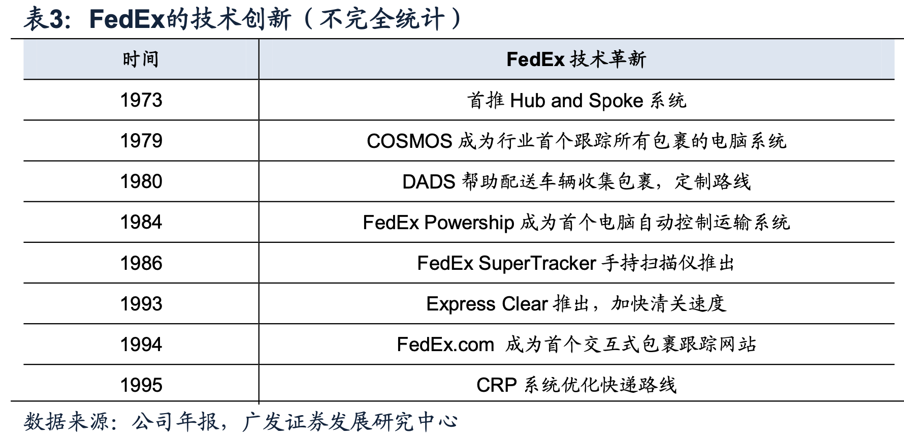 3.4 技术投入具备后发优势,后期成功追赶 FedEx