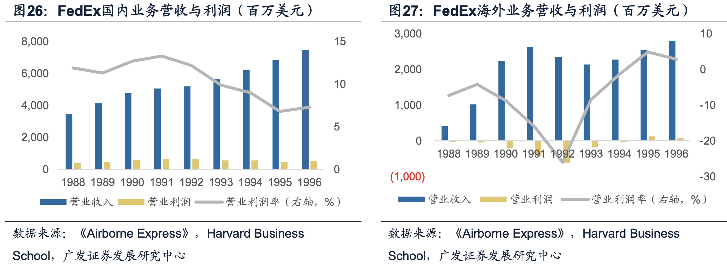 1986年,Airborne Express每天的包裹处理量达10.5万件,同年录得5.42亿美元的营业收入和1300万的净利润。1986-1997年间,Airborne的营业收入CAGR为16%,同期FedEx的营业收入CAGR为15%。