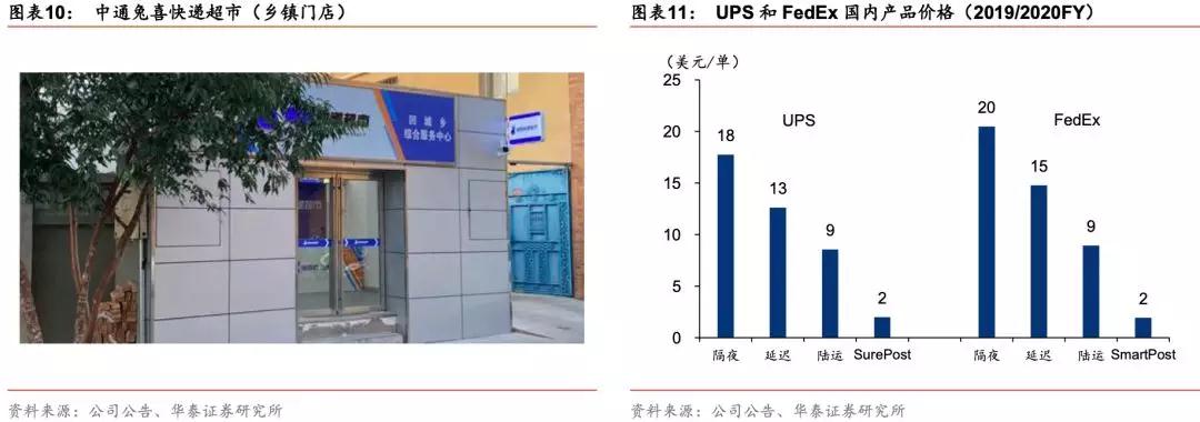 即使高度重视服务品质的国际快递,资源社会化亦不罕见。以FedEx为例,FedEx Express以直营模式经营高端航空件,FedEx Ground则以加盟模式经营低端陆运件(FedEx Ground前身是Roadway Package System,后被FedEx收购),其定价仅为高端航空件的一半左右。而通过将末端派送外包给USPS,FedEx Smart Post和UPS Sure Post实现了价格带的下沉。