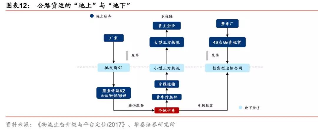 根据路哥创始人冯雷的观点(物流生态升级与平台定位/2017),中国公路运输呈现地上地下的“双层结构”:首先,地上部门可开具发票,受到政府承认;其次,地下部分满足社会需求,但存在土地、社保、税务等合规风险,游离于体制外。因此,中国物流企业(尤其中小企业)规范性普遍较差,合规经营成本很高。