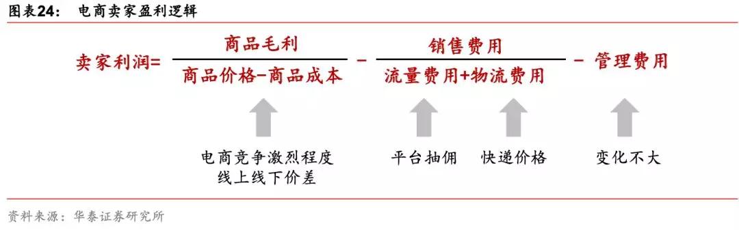 随着电商竞争激烈,以及线下效率改善,电商卖家毛利持续下降;而平台货币化率(takerate)提升增加了卖家流量成本;快递降价成为卖家控制成本的重要手段。