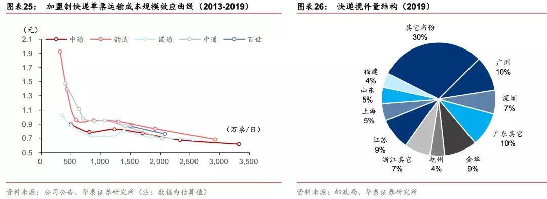 以社保为例,假设加盟制快递全网20万人(含快递员),社保成本5000元/年/人,10亿级的成本是不小的负担。加盟制则实现“地上(快递总部)”和“地下(加盟商)”的连接,规避了大量成本。