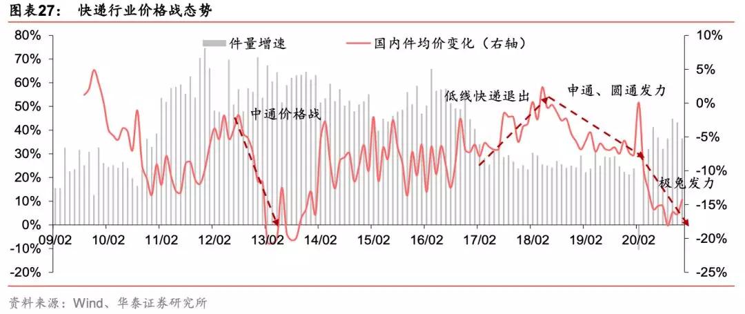 我们的微观调研表明:极兔末端价格略低于百世,品牌力偏低;快速扩张管理偏粗放,推测其单位成本显著高于通达系。极兔的扩张加剧了市场“内卷化”,但我们并不认为下一个极兔会很快出现。