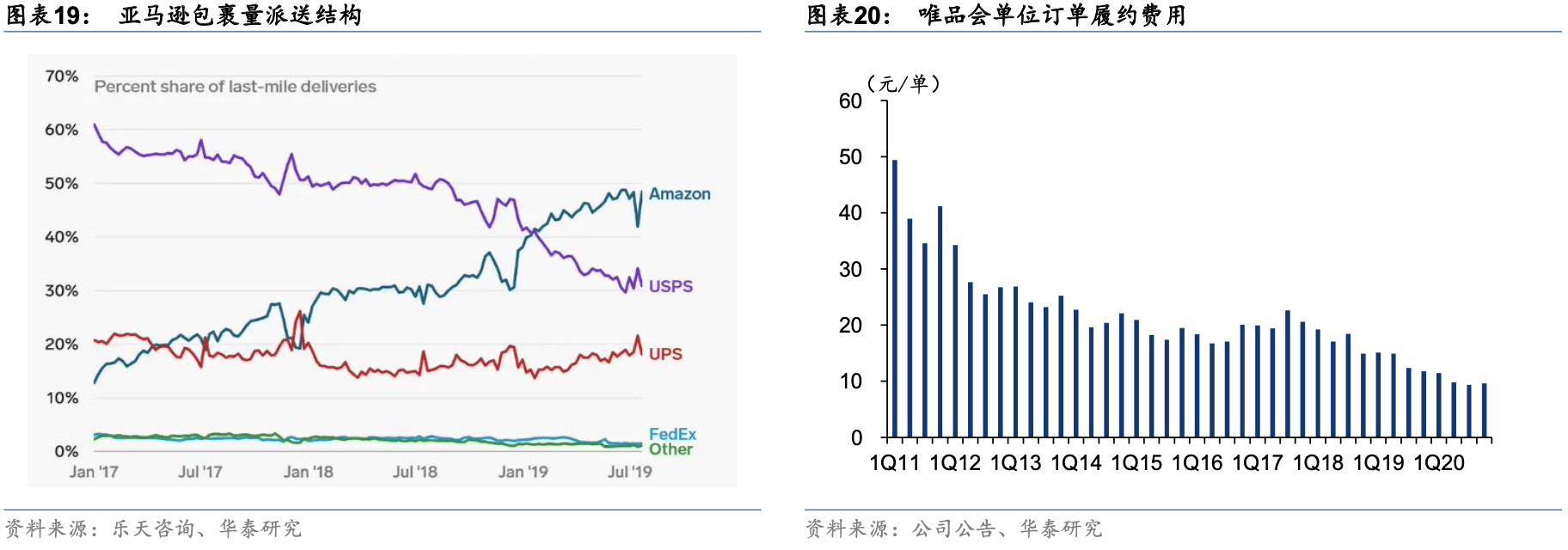 根据科斯的观点,企业的边界,取决于市场交易成本和内部组织成本的比较。自建物流和外包物流的战略选择,同样遵循“组织成本与服务溢价的匹配”原则。2019年11月,唯品会宣布关闭自建物流(外包予顺丰),实现了单位履约费用的下降。