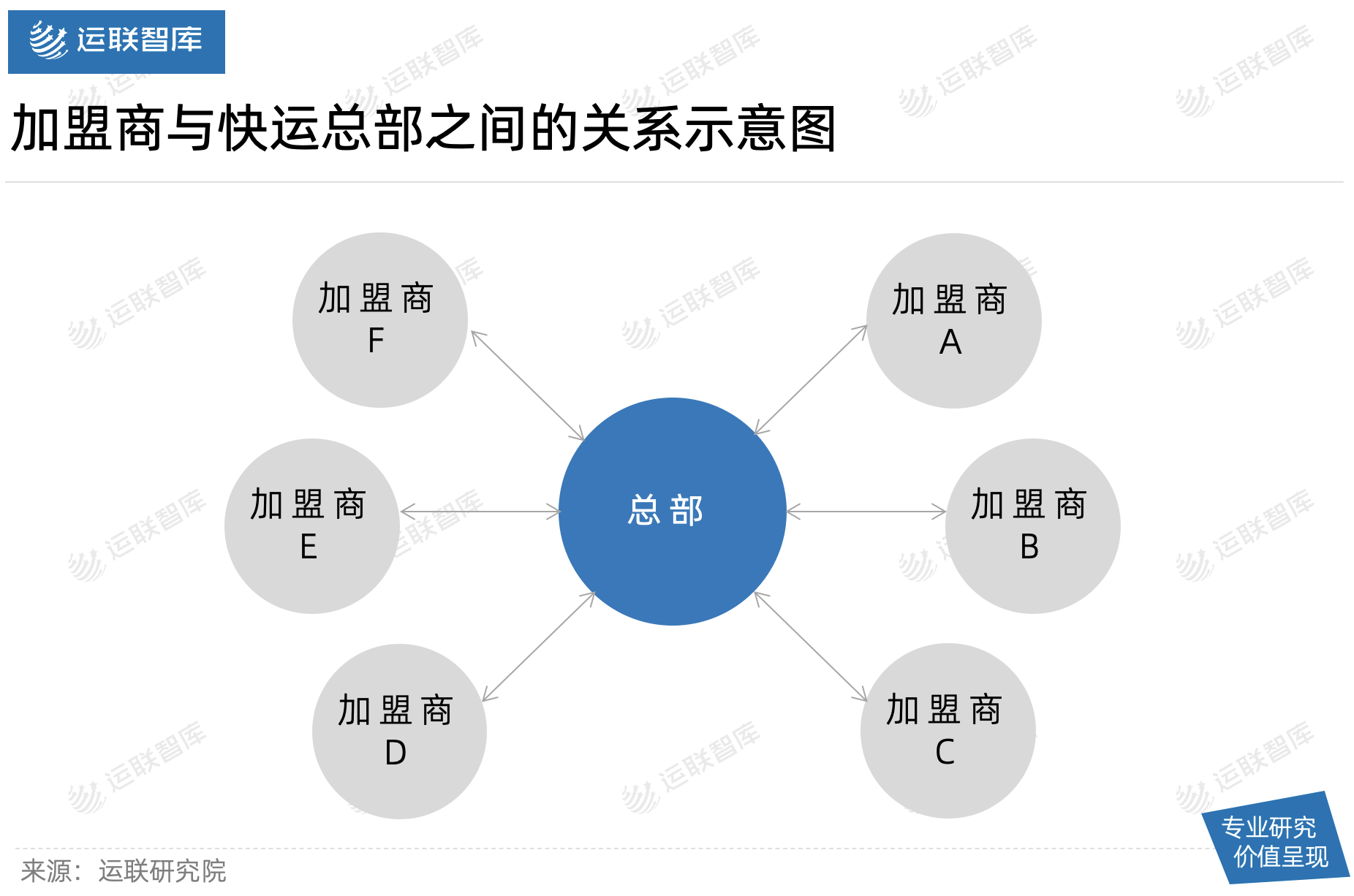 单单从各自为政来说,物流行业的加盟与其他行业的加盟并不相同。物流行业的加盟是“面”状的,而一般加盟模式是“点”状的,孤立的,不贯通的。快运加盟模式下所构成的网,是互相协同的;因此,当加盟商服务质量低下时,会影响其他网点的业务量;但由于加盟商众多,这种由于网点低质量所造成的经济损失将由总部承担。
