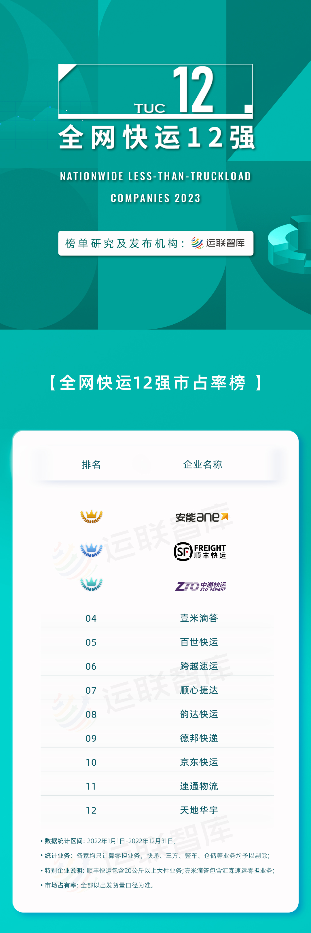 全网快运12强(市占率榜)