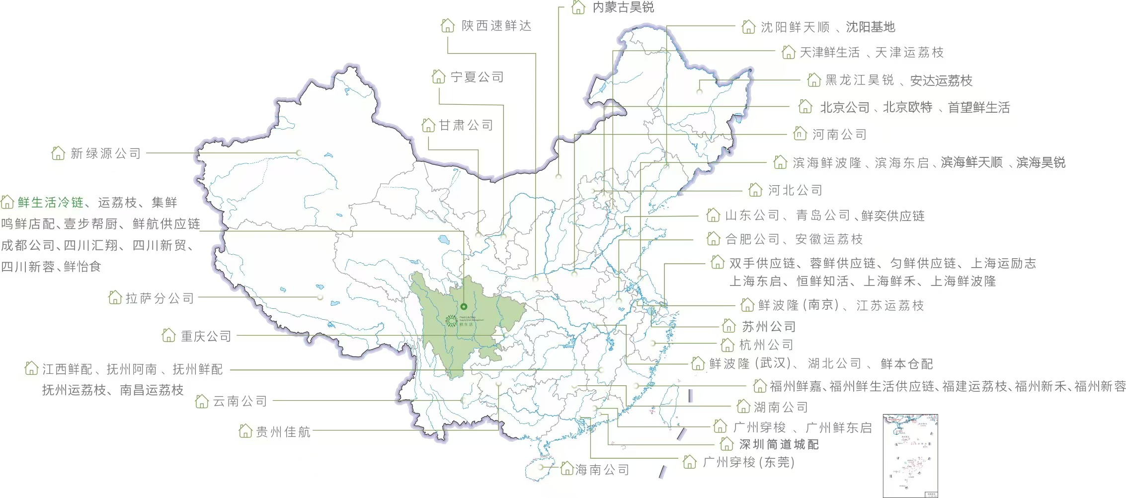 鲜生活冷链成立于2016年,由世界500强新希望集团旗下消费产业投资控股平台“草根知本集团”孵化打造,致力于冷链食品通路服务,为餐饮企业、生鲜零售企业、生鲜食品生产贸易企业提供从源头到门店的全程冷链供应链服务。公司通过并购整合和资源整合的方式,采用数科技术赋能,提升冷链物流行业效率,提高食品流通安全性和可追溯性。目前,公司旗下拥有数智冷链、冷链控股、冷链科技、冷链产服、商流数控、食材控股和海外供应链7大事业群,在全国建立了100余家分支机构。