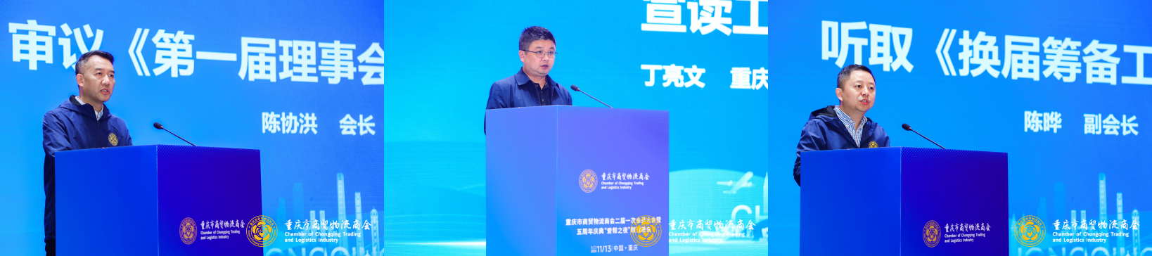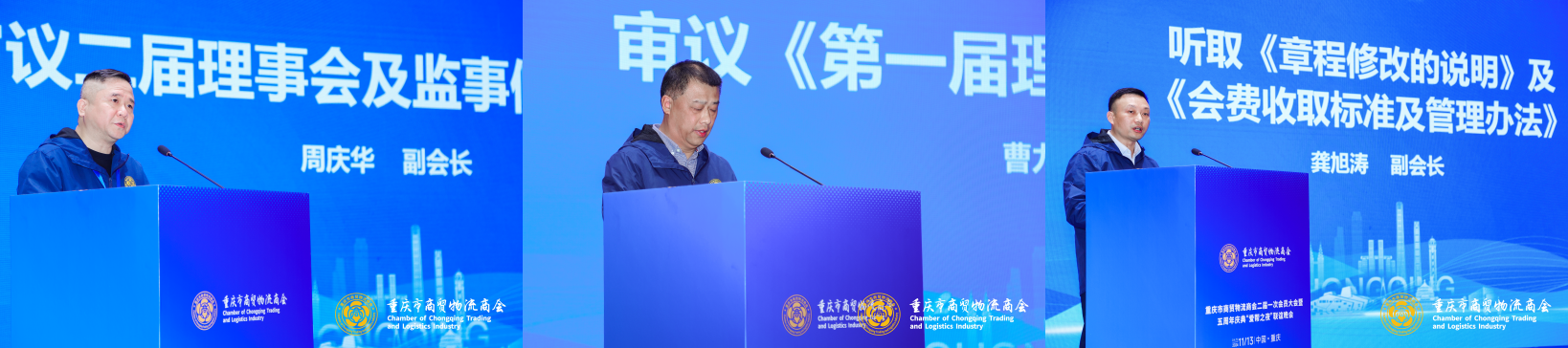 会议以投票表决方式,选举产生了重庆市商贸物流商会二届理事会会长、副会长;会议审议并通过了《关于授予陈国华同志重庆市商贸物流商会资深会长荣誉称号的建议》,《关于设立执行会长及候选人的建议》以及《关于聘任二届理事会秘书长人选的建议》。